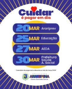 Araripina Prefeitura de Araripina divulga calendário de pagamento de março de 2026 20 de março de 2026