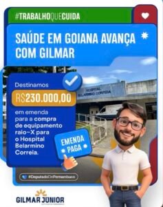 Goiana Saúde de Goiana avança com investimento de R$ 230 mil para novo equipamento de raio-X, fruto de emenda do deputado estadual enfermeiro Gilmar Júnior 18 de abril de 2026